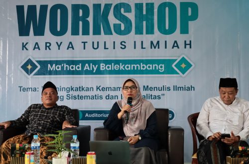 Ma’had Aly Balekambang sukses menyelenggarakan Workshop Karya Tulis Ilmiah (KTI) bagi para Mahasantri serta Santri MA dan SMK pada Sabtu, 14 Februari 2026, bertempat di Auditorium Ma’had Aly Balekambang. Workshop KTI tersebut mengusung tema “Meningkatkan Kemampuan Menulis Ilmiah yang Sistematis dan Berkualitas.” Kegiatan ini dihadiri oleh Mudir Ma’had Aly Balekambang, Dr. K.H. Nasrulloh Afandi, Lc., M.A., serta menghadirkan narasumber Dr. (Cand.) Hj. Kamilia Hamidah, Lc., M.A., bersama suami beliau, Dr. K.H. M. Ni’am Sutaman, Lc., LL.M., selaku Mudir Ma’had Aly Al Kautsar Kajen Pati. Acara ini dipandu oleh Ustazah Hasna Layyinatus Syifa, S.Ag., sebagai moderator. Ketua panitia, M. Tajuddin Al Falah, menyampaikan bahwa kegiatan ini diselenggarakan sebagai upaya meningkatkan kapasitas…